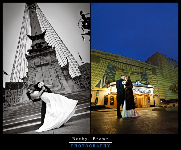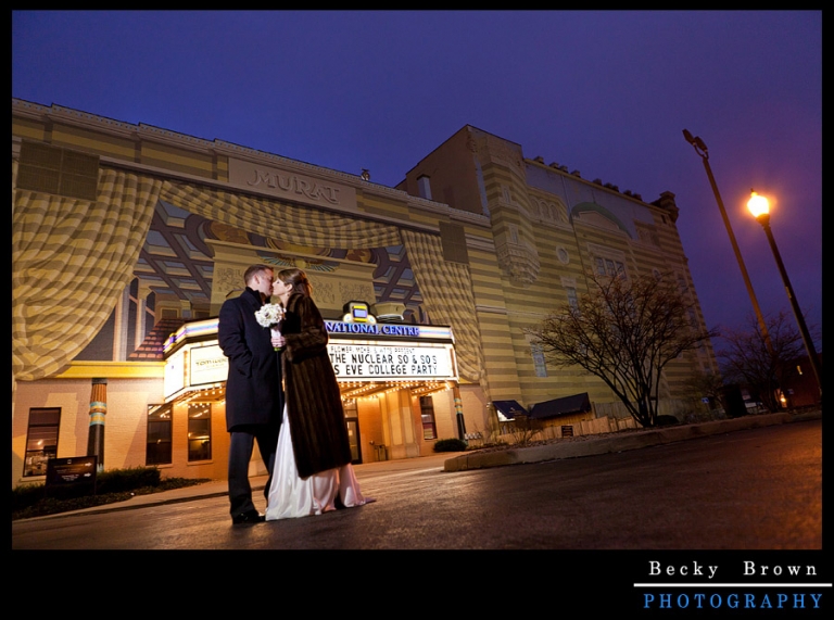 Love night time photos 🙂 The Christmas lights were still up on the circle and around Mass Ave. We took advantage of both and the Murat, where they had the reception.