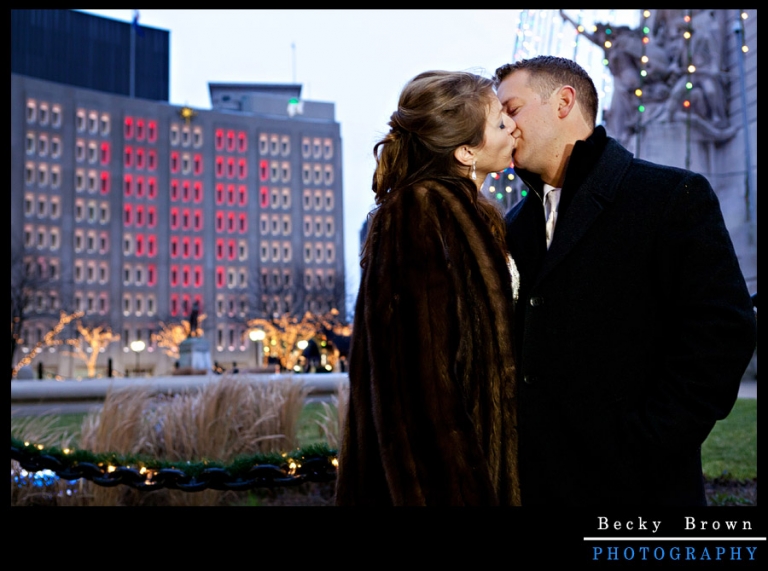We lucked out and it was in the 50’s on the day of their wedding. It’s been such a weird winter I didn’t know what to expect. After their traditional Catholic ceremony we spent some time cruising around downtown taking photos. LOVED the big fur coat Jen rocked for some of the night photos!