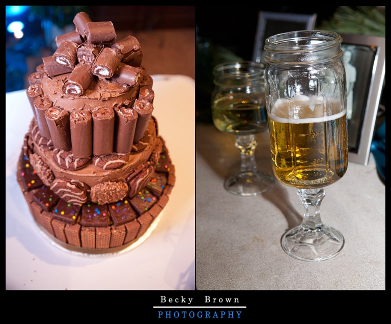 On the left is Gary’s groom cake filled with all kinds of his favorites. It’s a chocoholics dream!