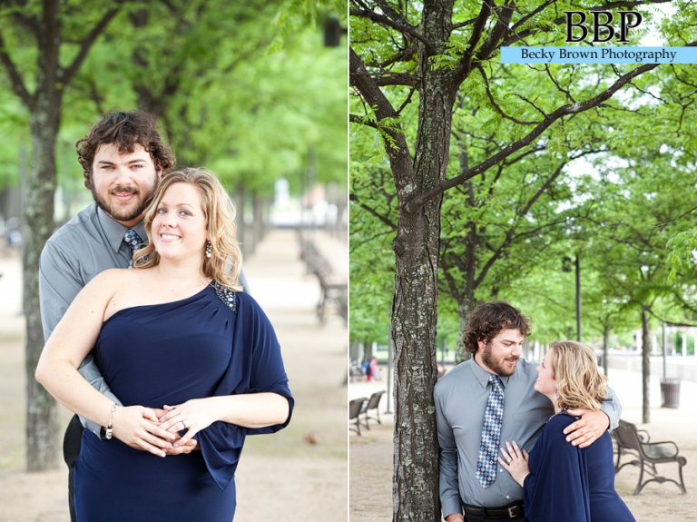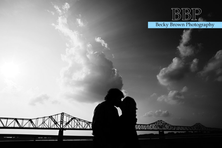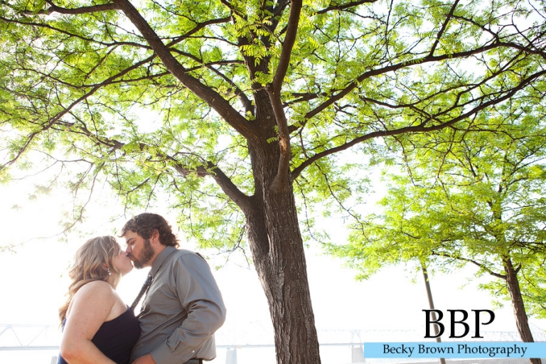 When we were talking about engagement session ideas she mentioned that they love to go down to Louisville in the summer for concerts so we decided to make the trip down for their session. We started at Fourth Street Live in downtown where they go for concerts and is the home to several bars and restaurants. From there we headed out by the riverfront for some great views.