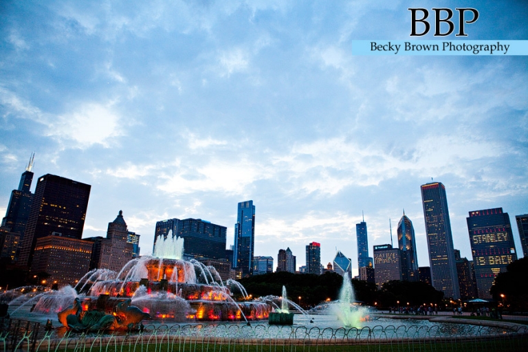 The view from Buckinham Fountain where we were shooting for Melissa and Matt’s esession. The Blackhawks had just won the Stanley Cup so you see the messages on the buildings downtown.