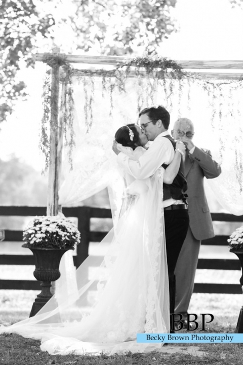 Jessica & Zach Wedding (shot by Allie): “This is my favorite photograph, not only because it was the moment we were both waiting for, but I love the way his right hand is tangled in my veil, the way we are holding one another, and my step-grandfather in the background, wiping away his tears. “