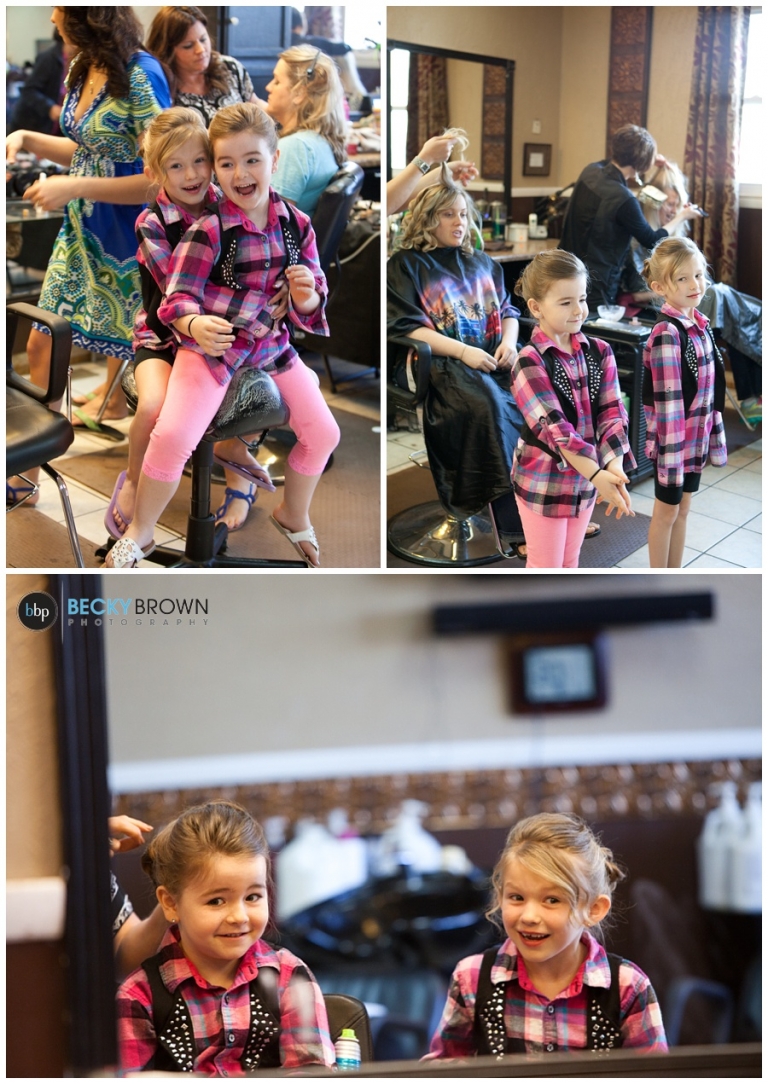 These two might be the cutest flower girls ever. I mean matching outfits at the salon?! Love it!