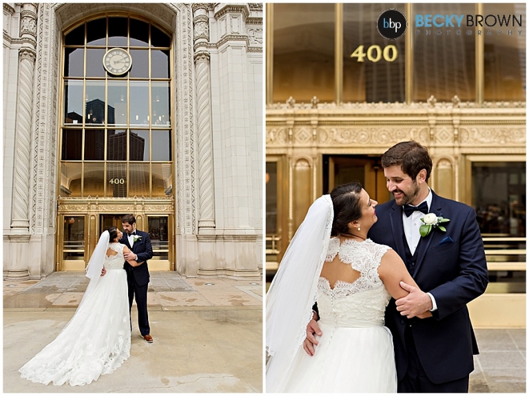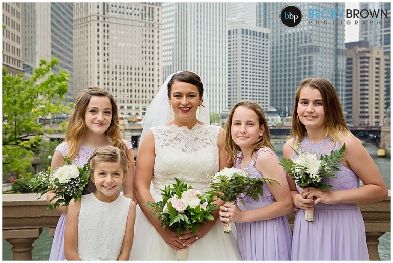 After a first look with dad (love it!) and then her groom to be we headed out for photos in the city. The forecast was giving me major stress all week and even that day it looked questionable, but thankfully held out for our stop downtown at the Wrigley Building.