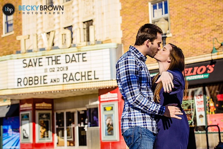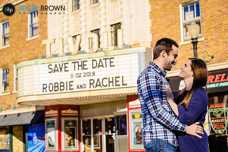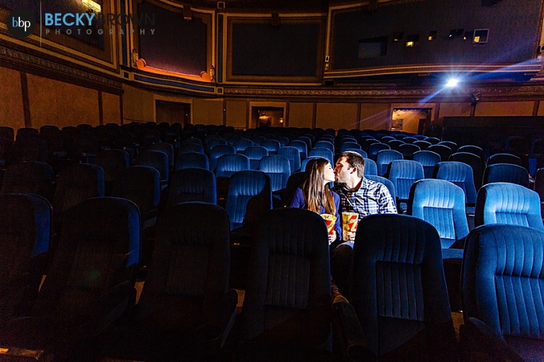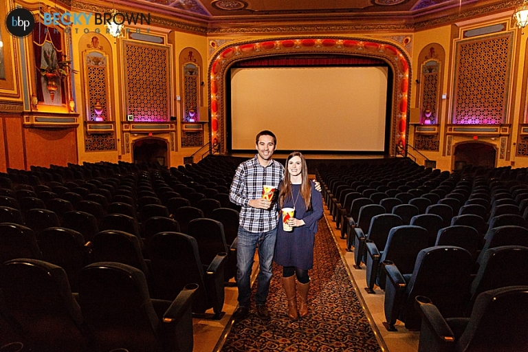 I was thrilled when they reached out to me and so excited when they told me about their idea to do some photos for their engagement session at Tivoli Theater. What a better idea for movie lovers than that?!