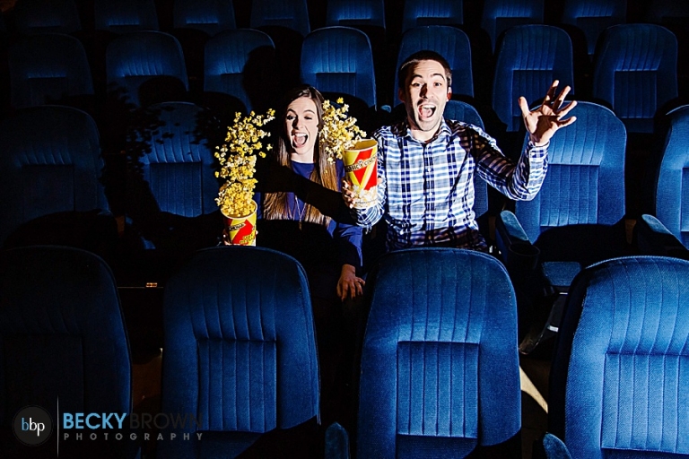 Let’s just say we had a few complications when we arrived as they had mixed up the dates and weren’t ready for us, but it all worked out in the end. Popcorn was popped, we laughed, we faked our best scary movie faces and had a great time.I LOVE their names on the marquee that they used for save the dates. Which by now I think everyone should have received since we’re less than 3 months out. I’ve been dying to share them, but I know they didn’t want anyone to see them until those went out in the mail.