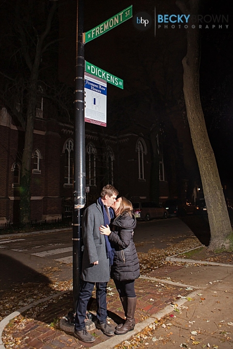 The plan was for him to drop to one knee on this corner on their way to dinner. Why this corner you ask? They used to live in this neighborhood a few blocks from each other and this was the corner they would always meet on to head elsewhere. Super cute right?!
