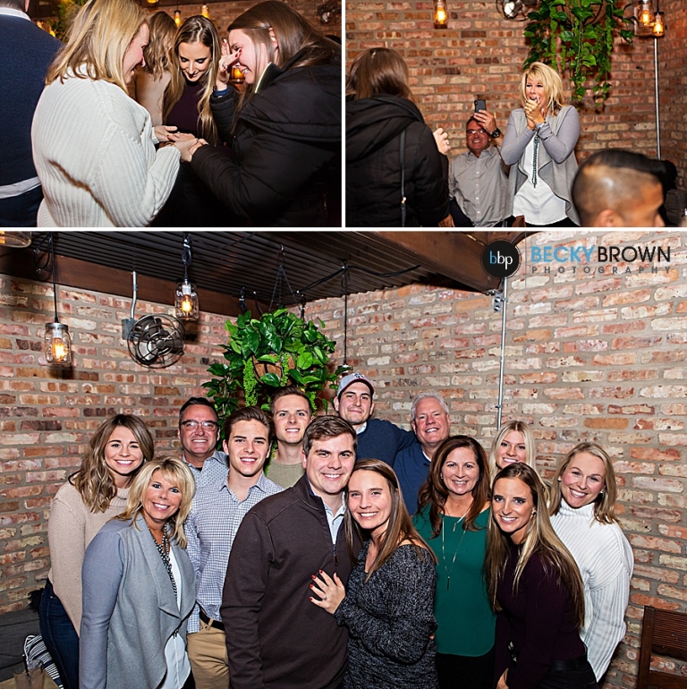 From there they continued onto their “dinner” plans. Little did Courtney know that surprise number two was coming! As we headed into the back room at Summer House and their families were waiting!